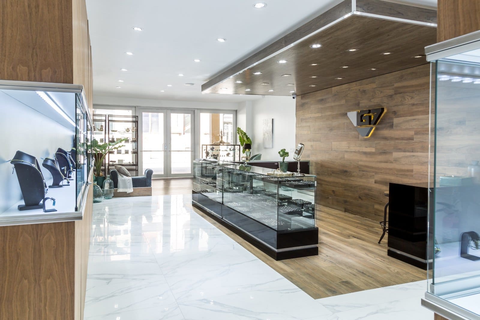 Located in Miami’s iconic Seybold Jewelry Building, G7 was designed as a luxury retail space that needed to balance elegance with functionality. The goal was twofold: create an elevated environment for customers while keeping the owner’s wholesale operations discreetly tucked away.